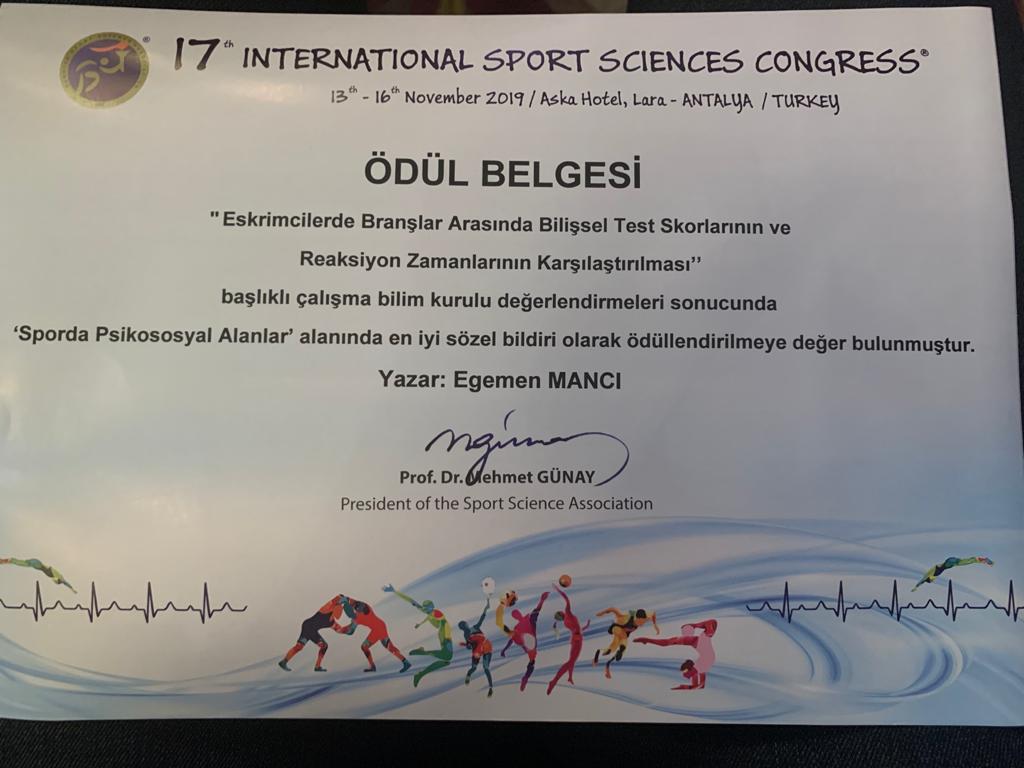 Sports Sciences Congress Best Oral Presentation Award, 2019